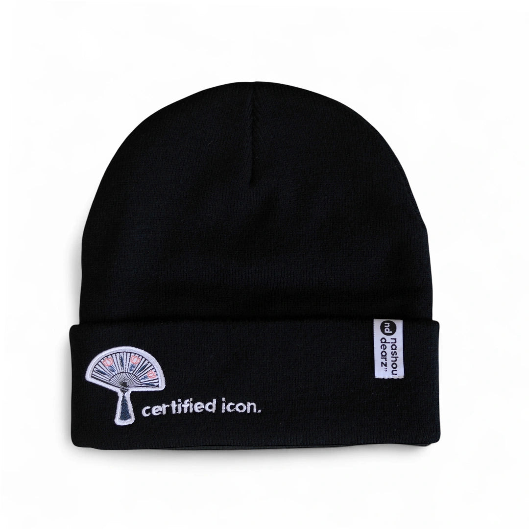 Shaffeh hand fan patch with embroidered “certified icon” text.