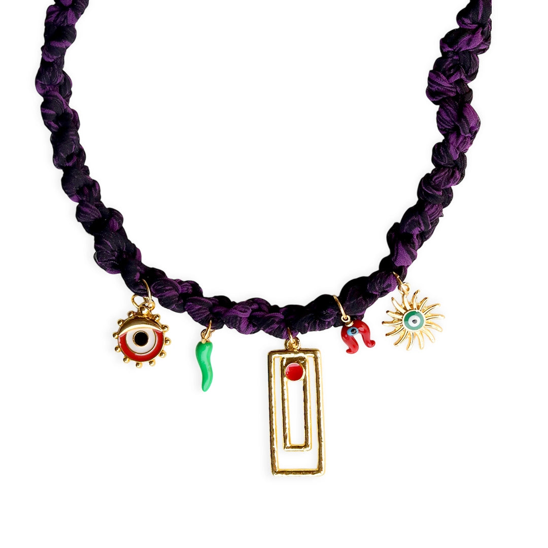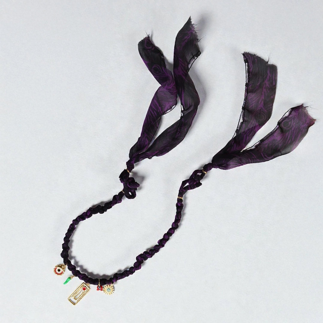 Handmade braided necklace crafted from deep purple bandana fabric