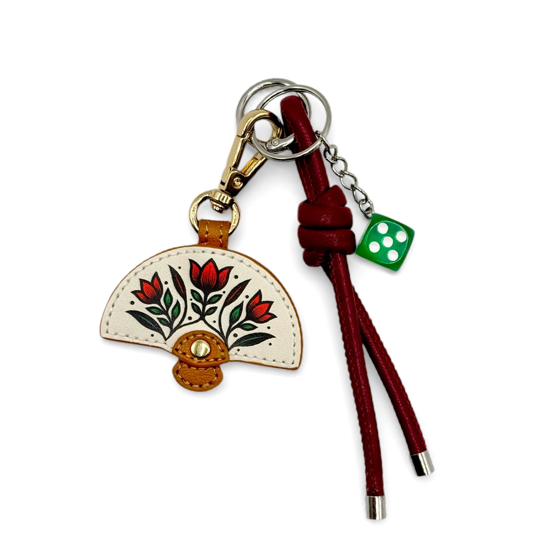 The Wild Rouge Ink Leather Charm takes the bold, floral energy of our fan design and turns it into an elegant accessory you can carry everywhere. Printed on high-quality PU leather and handmade by local artisans, this charm blends rich tattoo-inspired blooms with a luxe finish — perfect for adding personality to your bag, keys, or even your outfit.